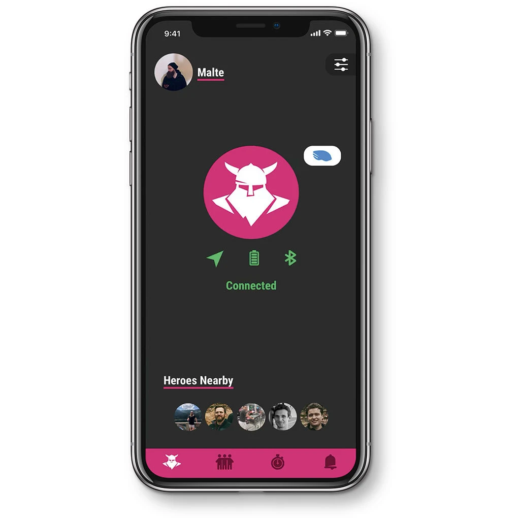 Kurz erklärt: Das System besteht aus dem Tocsen-Token an deinem Helm und der Tocsen-App auf deinem Handy. Der mit der App über Bluetooth verbundene Token erkennt den Sturz, die App gibt sofort ein lautes Alarm-Signal und setzt nach 30 Sekunden Wartezeit einen GPS-Daten-Notruf auch über eine schwache Funkverbindung an deine Notfallkontakte und Tocsen-User in deiner Nähe ab