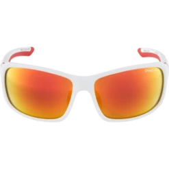 Die Stärke der Sportbrille Alpina Lyron ist ihr Vollrahmendesign, das für ein modernes Design und hervorragenden Schutz sorgt. So ist man beim Sport bestmöglich geschützt und sieht dabei auch noch gut aus. Die Verspiegelung reflektiert Infrarot-Strahlen und verringert so die Belastung für die Augen. Die Scheibe besteht aus bruchfestem Ceramic-Material und bietet 100% UV-Schutz sowie die Tönung mit Schutzstufe Cat. 3 Den bestmöglichen Komfort garantieren kaltverformbare Nasenpads sowie Bügel mit gummierten Softeinsatz. Gleichzeitig fixiert ein hochwertiger Klappmechanismus die Position der Bügel. Scheibentechnologie: 100% UV-A, -B, -C-Schutz | Decentered Lenses | Ceramic Mirror Scheibenfarbe: rot